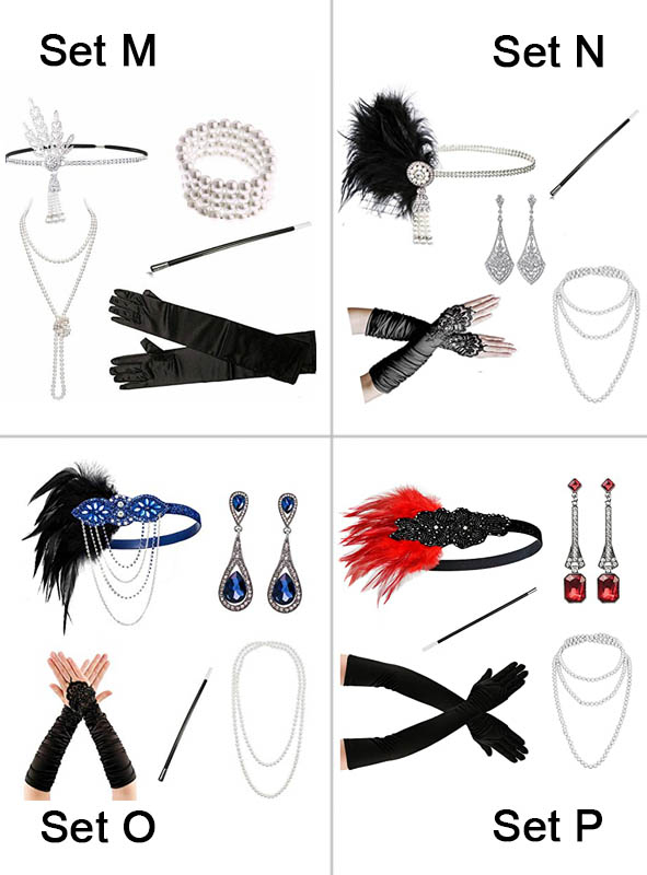 Jedes unserer 20er Jahre Zubehör Sets hier besteht aus 5 Teilen. Natürlich ist ein toller Kopfschmuck dabei und auch Schmuck darf nicht fehlen. Eine 20er Jahre Zigarettenspitze und die langen Gala Handschuhe sehen edel zum Paillettenkleid aus. Ohrringe, falls im Set vorhanden, sind Stecker. Für diese benötigen Sie gestochene Ohrläppchen. Sie können hier verschiedenen Variationen wählen: