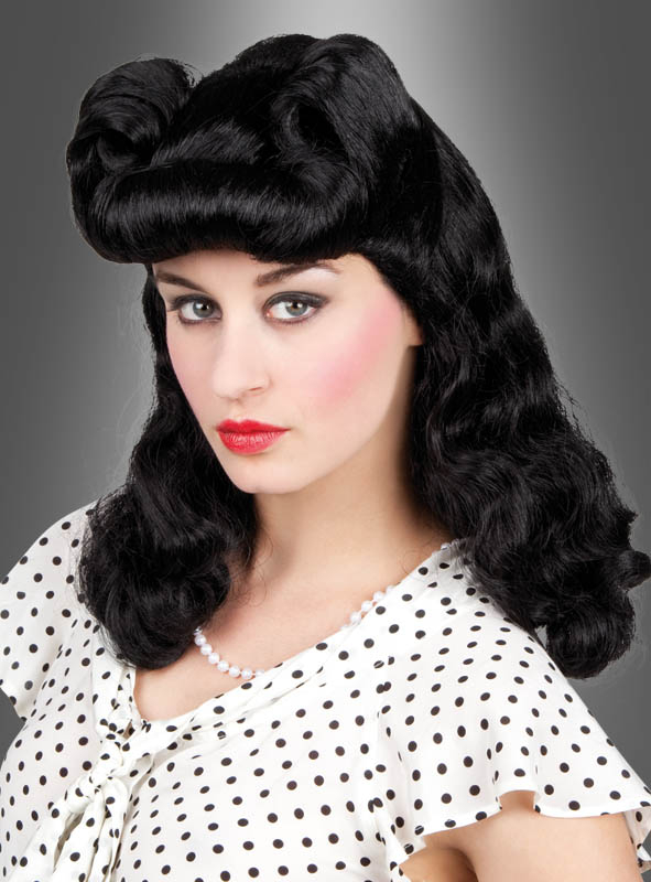 Zur Mottoparty mit 50er Jahre Frisur? Kein Problem mit dieser Pin Up Perücke, denn so brauchen Sie sich keine Gedanken über das Frisieren machen. Noch ein passendes Outfit im Punktemuster und fertig ist das Kostüm. Ob an Karneval oder zur 50er und 60er Jahre Fete, eine gute Figur machen Sie auf jeden Fall.