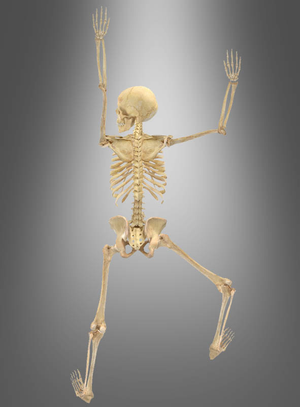 Die Skelett Halloween Wanddekoration ist nur 0,4 cm flach und kann so schnell und einfach aufgehängt werden. Die Arme und Beine sind wie bei einem Hampelmann beweglich und können so in viele lustige Positionen gebracht werden. Der von hinten abgebildete Knochenmann sieht aus, als ob er die Wand hochklettern möchte. Die Halloweendekoration ist ca. 150 x 0,4 x 158 cm und damit fast lebensgroß.