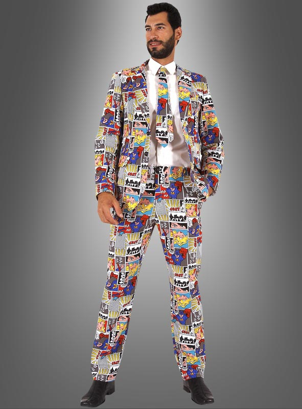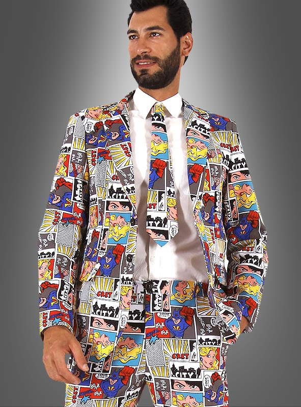 Möchten Sie die Comic Con, die Büchermesse oder Games Convention besuchen? Wie wäre es mit diesem Comic Kostüm für Herren mit unglaublich tollem Comic-Heft Print? Damit heben Sie sich von den Massen der Superhelden und anderen Kostümen deutlich ab. Natürlich ist dieser Herrenanzug auch ein ausgefallenes Kostüm für Karneval oder Mottopartys.