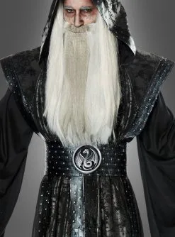 Silberner Zauberer Kostüm Mit Bart Und Perücke