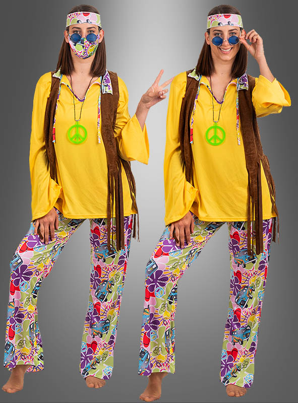 Schuhe sind nicht im Lieferumfang enthalten. Mund-Nase-Maske, Peace Zeichen Ketten und viel weiteres Zubehör für Hippies können separat bestellt werden.