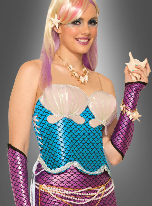 Kombinieren Sie diese schöne Korsage mit Teilen aus Ihrem Kleiderschrank und unseren anderen Kostüm Accessoires für Nixen und Sirenen. So können Sie im Handumdrehen ein Meerjungfrau Kostüm selber machen ohne großartig basteln oder nähen zu müssen.