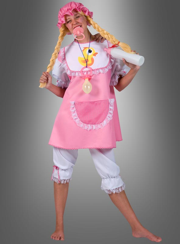 Stellen Sie Ihr inneres Kleinkind zur Schau mit dem lustigen Riesenbaby Kostüm für Damen. Heute müssen Sie ausnahmsweise nicht die Mama sein und können sich quengelnd und Daumen lutschend einen Spaß erlauben. Tolles Kostüm für Gruppen, die als Baby unterwegs sein wollen oder in Kombination mit unserem Storchkostüm.