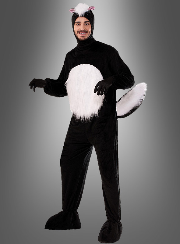 Ein wenig Mut gehört schon dazu, sich in dieses Stinktier-Kostüm für Herren zu werfen. Skunks oder Stinktiere sind berüchtigt für den unglaublichen Gestank, den sie bei Bedrohung verbreiten. Gut, das sie in Disney-Zeichentrickfilmen besser wegkommen. Das schüchterne Stinktier Blume wird dort zu einem von Bambis besten Freunden.
