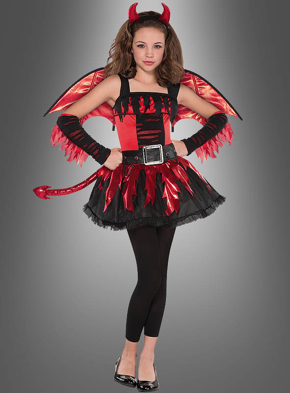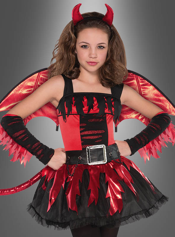 Bitte beachten: Die Schuhe auf dem Bild sind nicht im Teufelin-Kinderkostüm-Set enthalten!