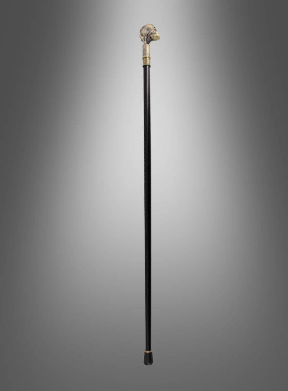 Der massive Gehstock mit Totenkopf ist bis ins Detail wunderschön gestaltet. Mit einer Länge von ca. 90 cm rundet er jegliche Arten von Kostümen ab. Den Griff bildet ein metallischer Totenkopf, welcher detailliert gearbeitet ist und durch die gold-glänzende Farbe besonders hochwertig wirkt. Ein Gummipuffer dämpft den Aufprall auf Asphalt und lässt den edlen Spazierstock noch wertiger aussehen.