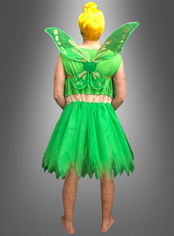 besteht aus einem Kleid mit angenähtem grünen Oberteil, Bierbauch und Tüllrock. Das glitzernde Oberteil hat einen Unterstoff, damit es nicht kratzt. Der Bierbauch hängt protzend vorn über und ist sogar mit einem Bauchnabel ausgestattet. Die schönen Brüste sind leicht wattiert und können auf Wunsch auch noch ausgestopft werden. Passend zunm Feenkostüm gibt es eine kurze grüne Hose mit Hosentaschen. Die ist schön weit geschnitten und mit einem Gummizug im Bund. Der grüne Tüllrock unserer Elfe besteht aus mehreren Lagen, ist schön fetzig geschnitten und glitzert und funkelt. Natürlich sind auch die glitzernden Elfenflügel und die gelbe Perücke im Lieferumfang enthalten.