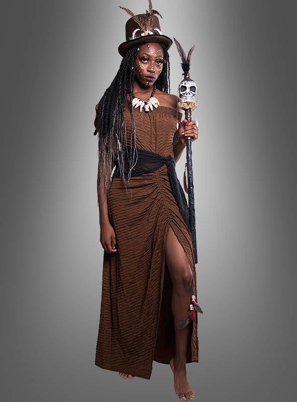 Mit dem Voodoo Hexe Kostüm für Damen fallen Sie auf jeder Halloween Party auf, den solch eine Verkleidung sieht man doch eher selten. Beschwören Sie ein paar nette Loas als Mambo, einer weiblichen Voodoo Priesterin.